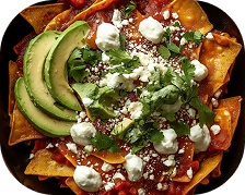 Tortillas rellenas de pollo deshebrado bañadas en una salsa artesanal de chile guajillo, ancho y pasilla. Se acompañan con crema fresca, queso rallado y frijoles de olla. Un desayuno contundente que mezcla tradición y sabor casero.